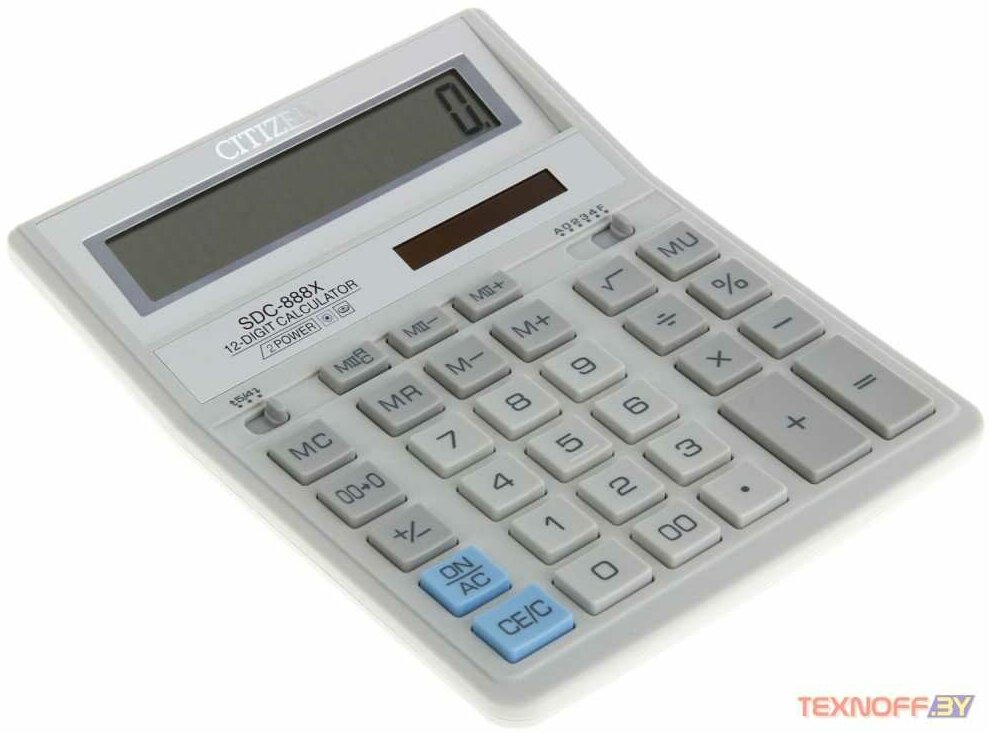 Калькулятор настольный Citizen полноразмерный, бухгалтерский, 12 разрядов, белый (SDC-888XWH)