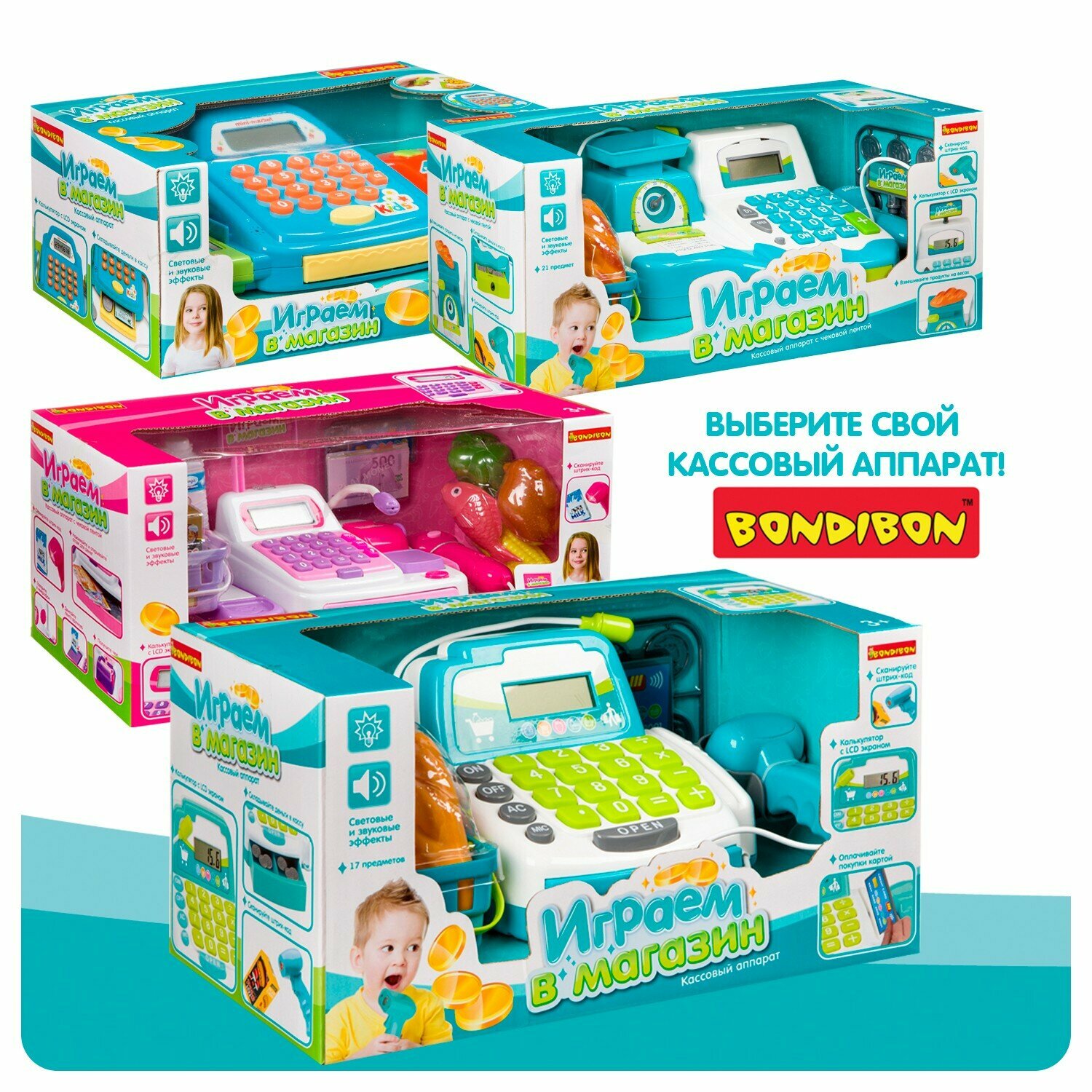 Магазин Bondibon с кассой и аксессуарами, 17 предметов