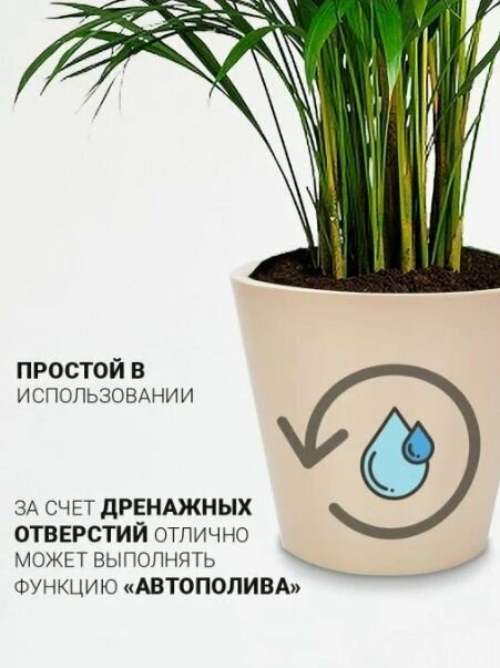 | Плюсы: | Удобно двигать по полу,очень хорошо растут цветы в нем. Уже 10 штук посадила в такие. Не могу найти белый горшок такой по адекватной цене. Оливковый с желтым очень эфыектно смотпятся. Кофейный хорош под дреаесные обои. Очень довольна. Спасибо. |