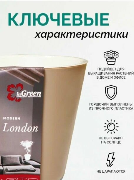 Горшок для цветов Ingreen Ing6207мшок London 330 мм, 16л на колесиках молочный шоколад Ing6207мшок .