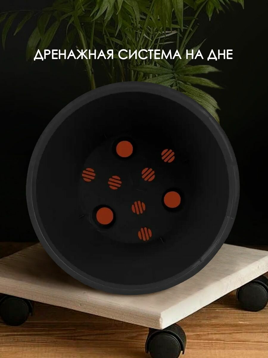 Горшок для цветов пластиковый Rosemary диаметр 33 см 16 л с дренажной вставкой на колесиках (черный) IdiLand