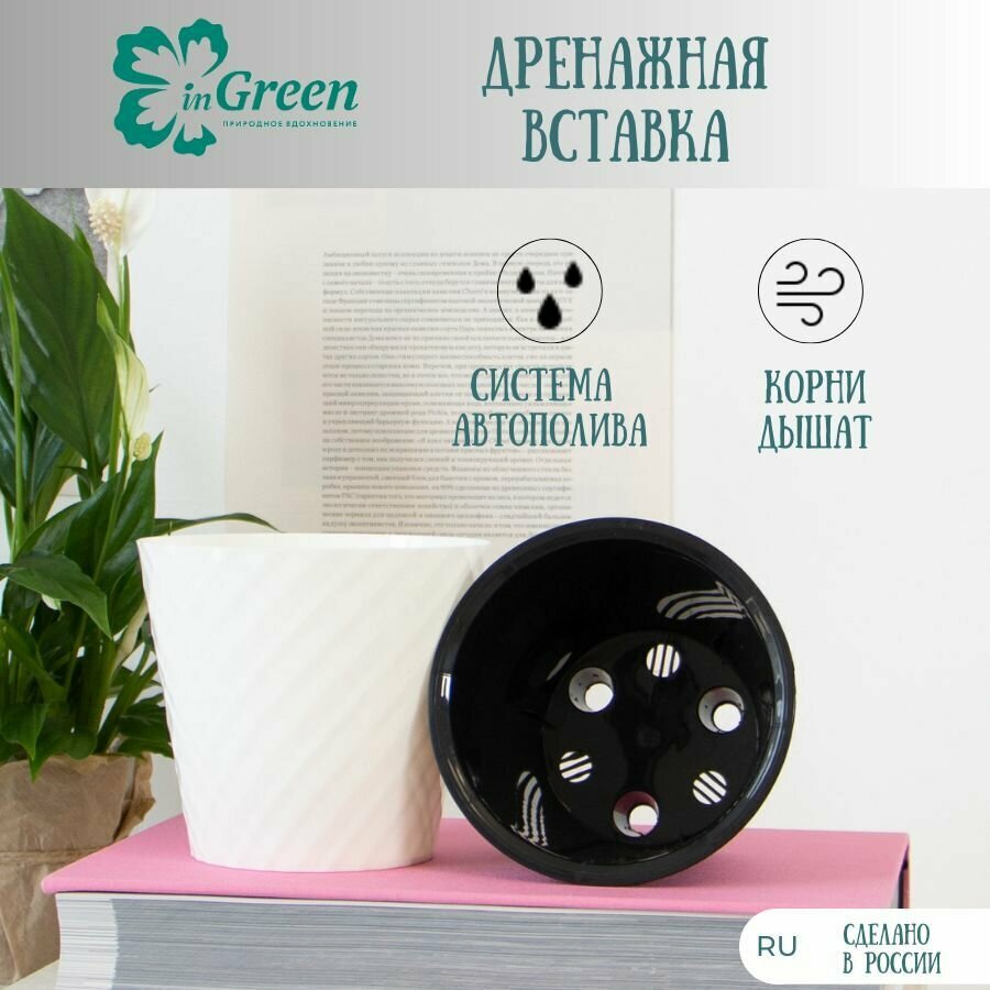 Горшок для растений InGreen коллекция London с дренажной вставкой 10,5л, (белоснежный жасмин) 6208