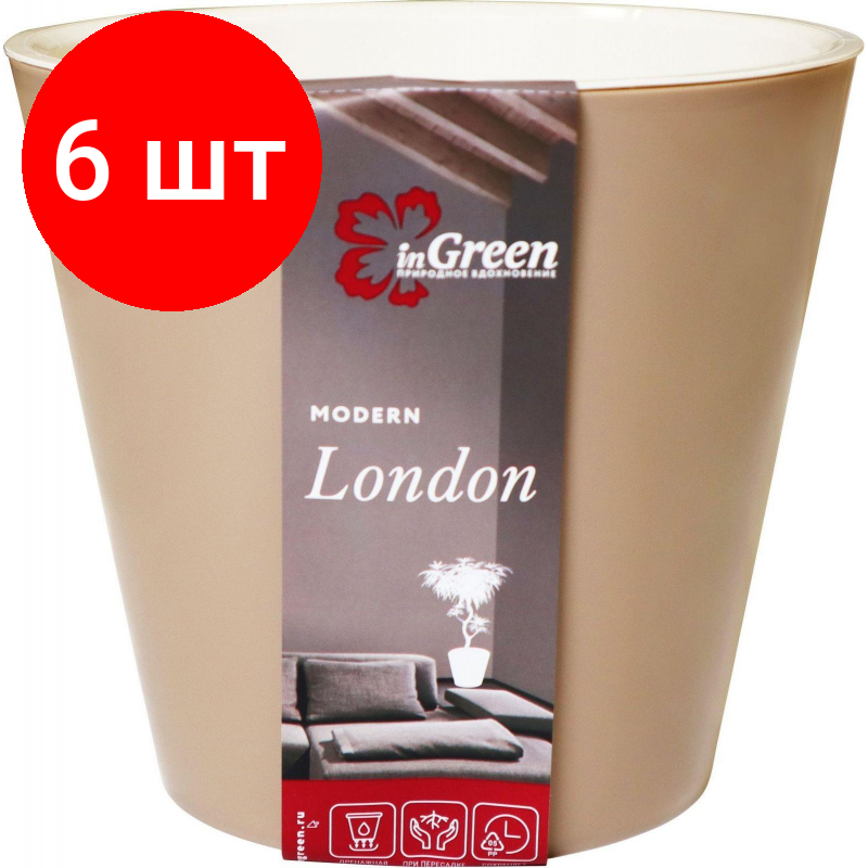 Купить Комплект 6 штук, Горшок для цветов London 230 мм, 5л молочный шоколад ING6206МШОК