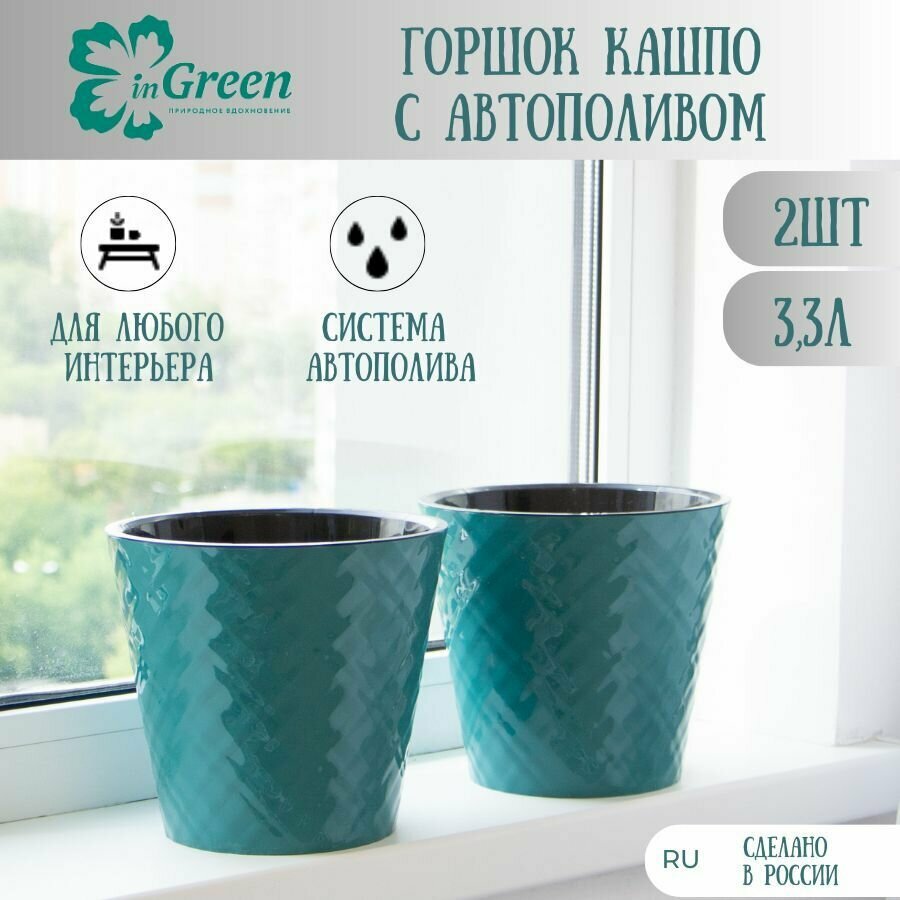 Набор горшков цветочных 2шт по 3,3л (ДхШхВ) 19х19х17,3см c автополивом горшок для цветов пластиковый кашпо уличное