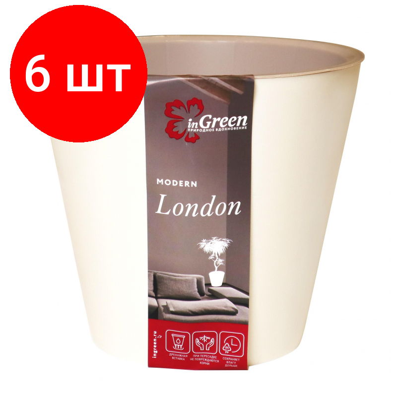 Купить Комплект 6 штук, Горшок для цветов London 230 мм, 5л сливочный ING6206СЛ