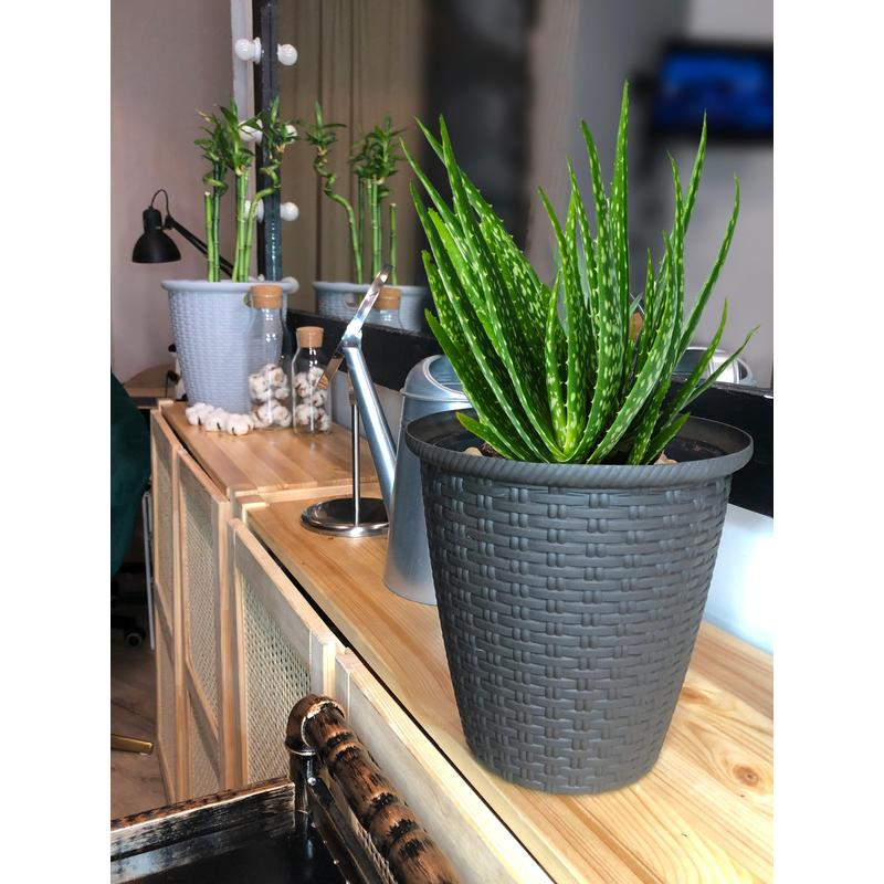 Кашпо Rattan D 210мм/4,5 л с внутренним горшком 2,25 л Утренний туман