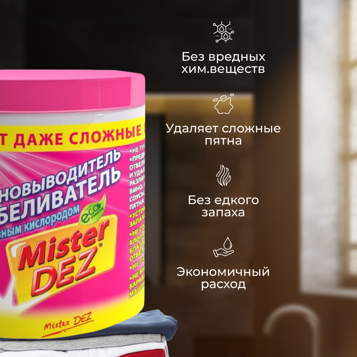 Отбеливатель-пятновыводитель с активным кислородом mister dez, 1000 гр.(мк)