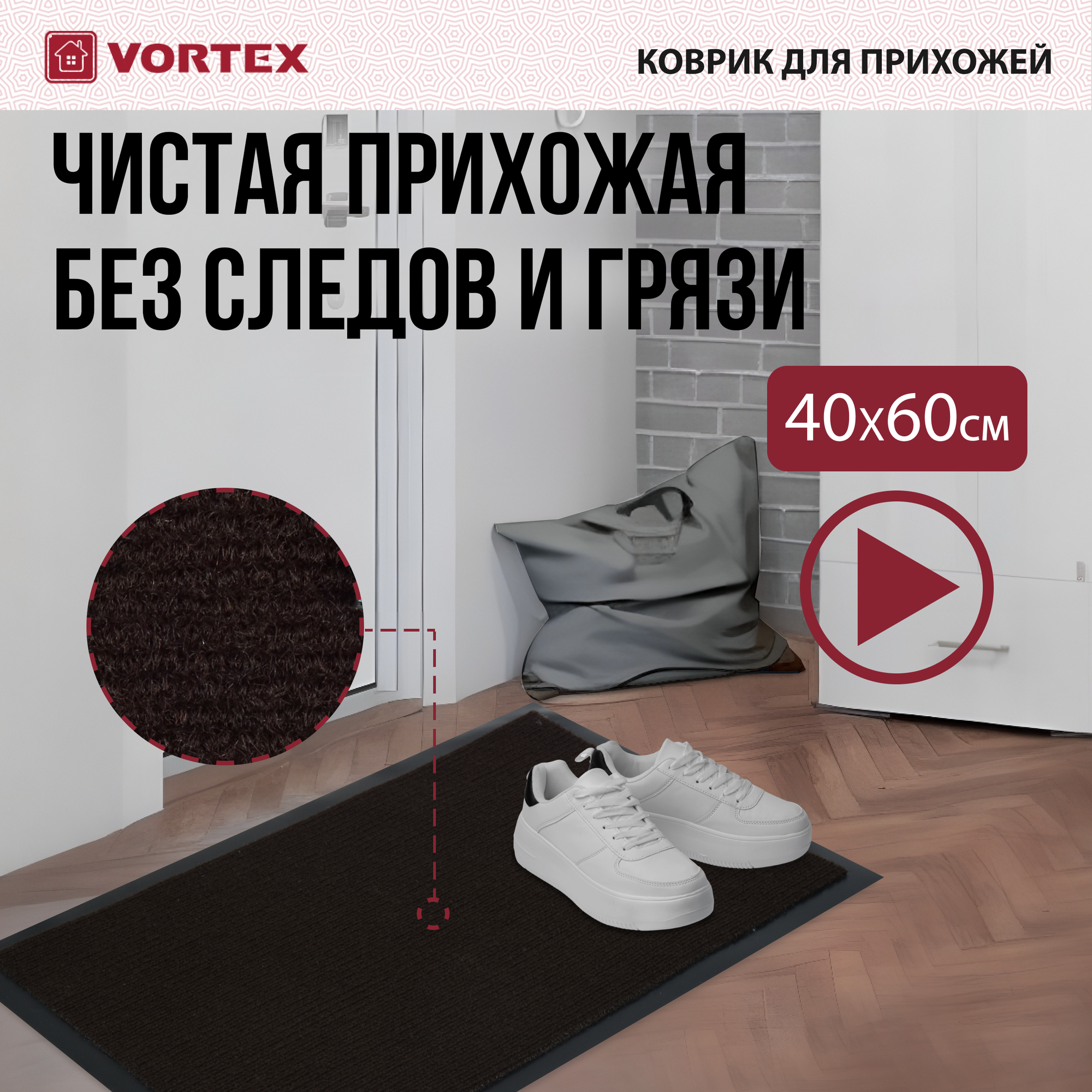 Придверный коврик VORTEX Trip, коричневый, 0.6 х 0.4 м
