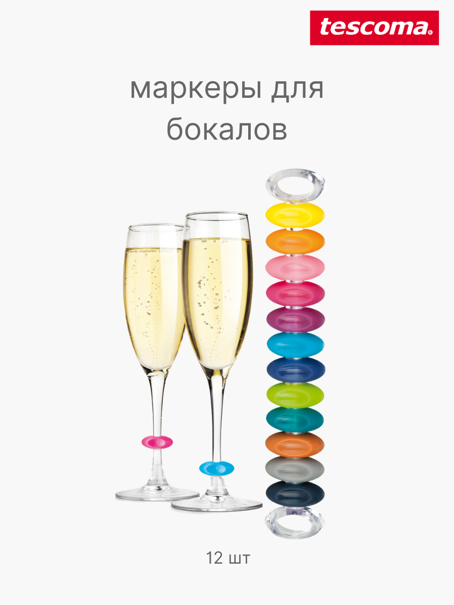 Маркеры для бокалов Tescoma Uno Vino Party разноцветный 12 шт. набор