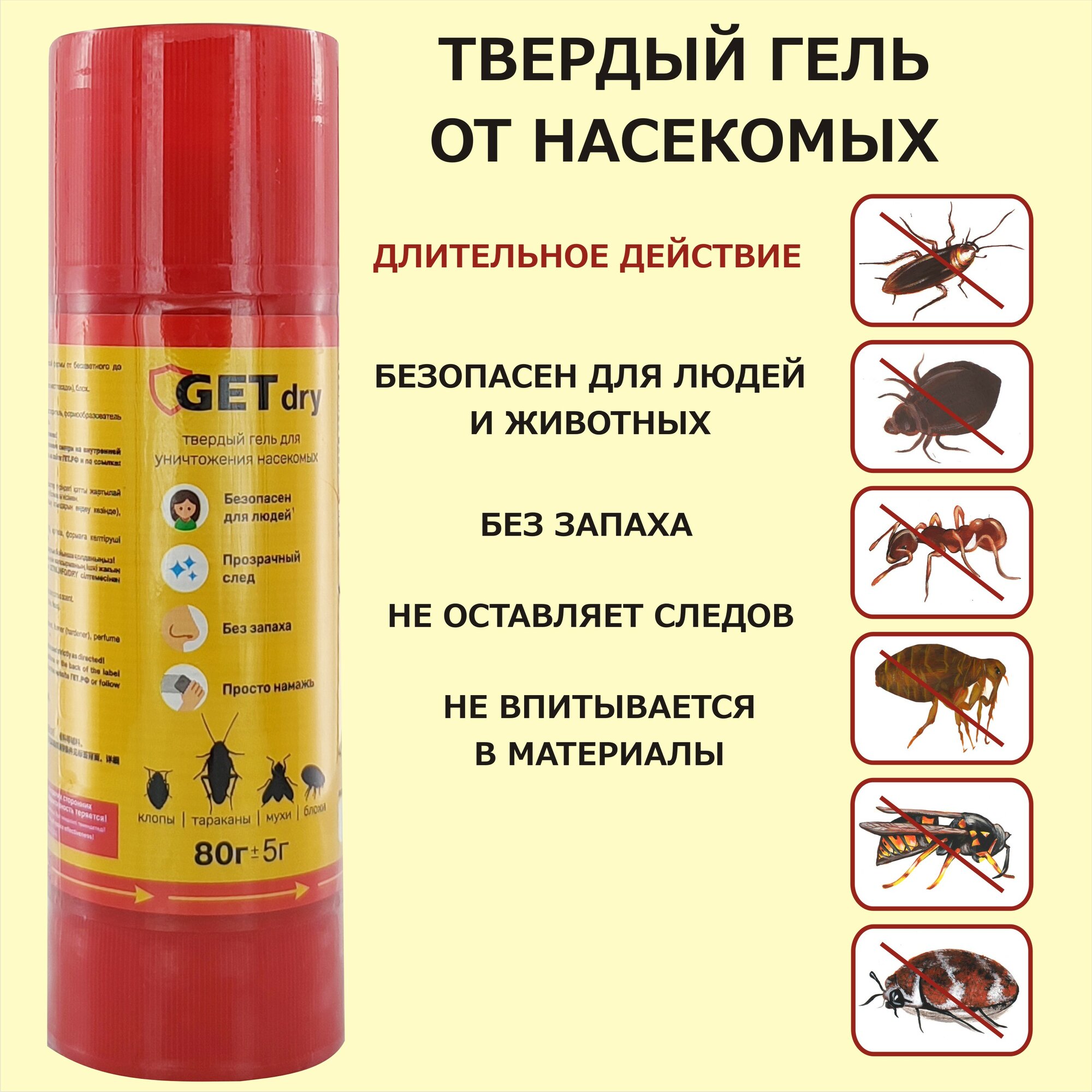 Get Dry (Гет Драй) твердый гель от клопов, тараканов, муравьев, блох, мух (твердый), 80 г