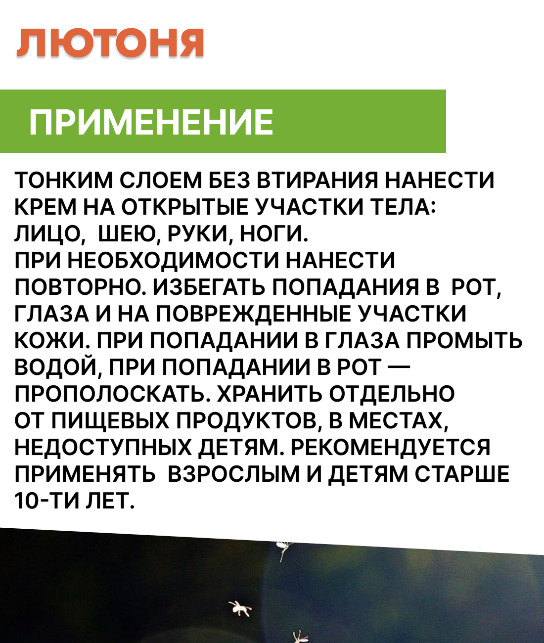 Крем от комаров, мошки, москитов, Лютоня, туба 50 г