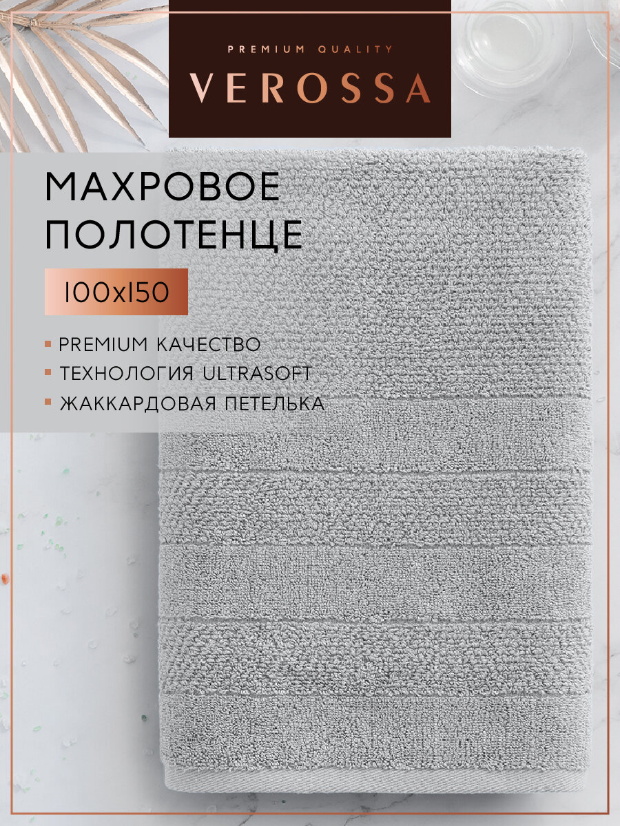 Полотенце банное "Verossa" 100 x 150 см, серый хлопок, Россия