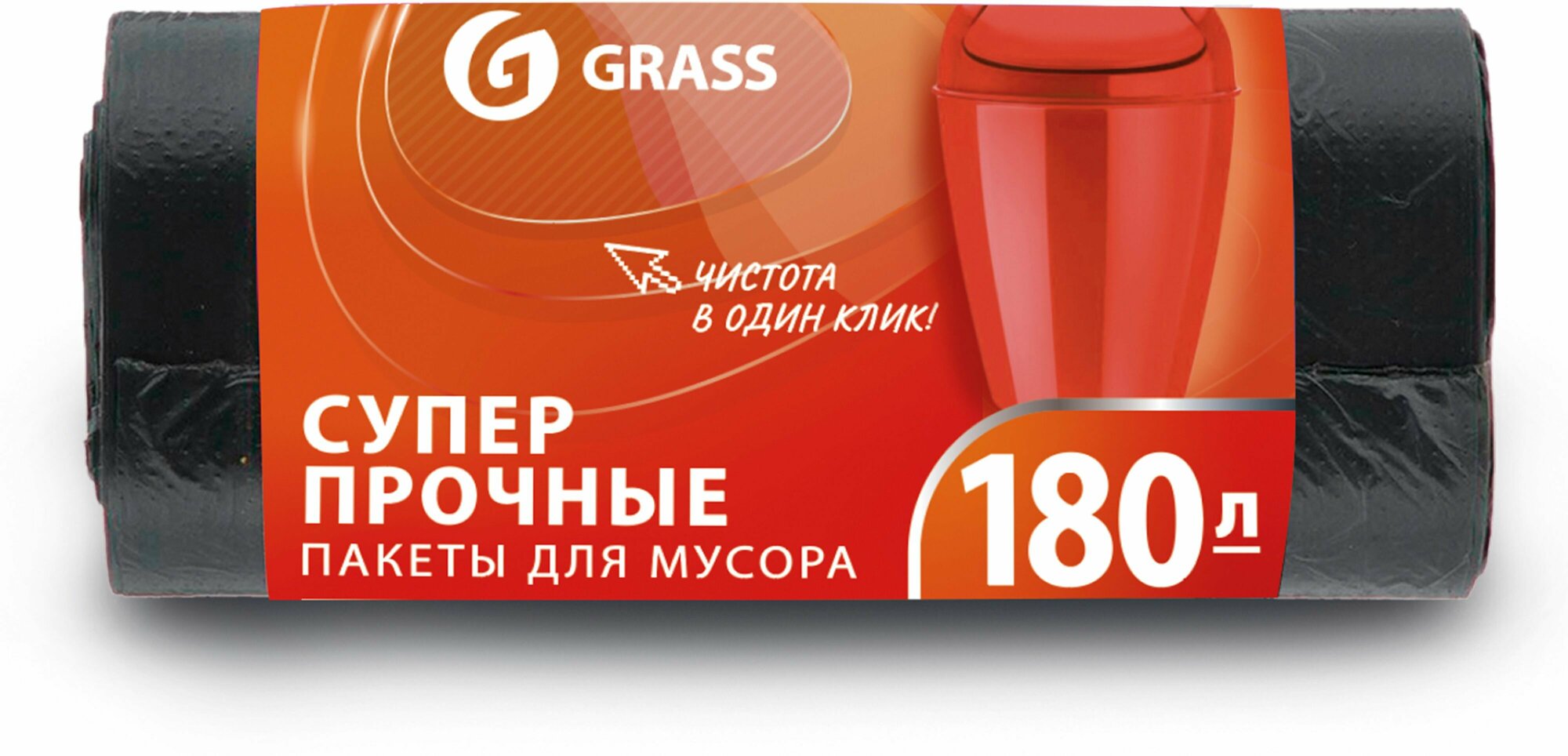 Мешок для мусора ПНД в рулоне 180 л, черный (рул. 10 шт), Grass
