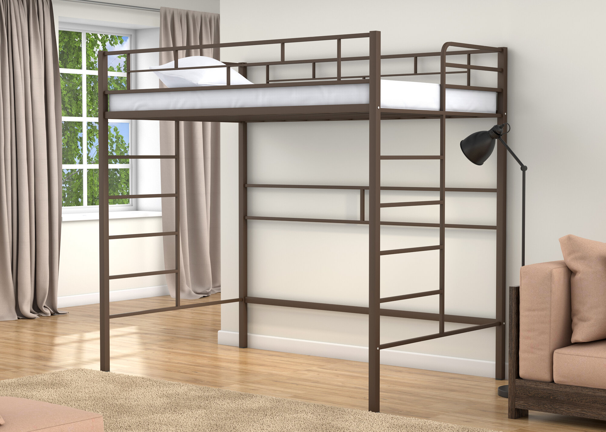 Купить Кровать чердак "Амстердам-2/120" Коричневая/ для детей и взрослых/спальное место 120х190 см/ двухъярусная кровать с нишей/ металлическая/ двухэтажная/ детская/ взрослая/ высокая/ железная/двуспальная