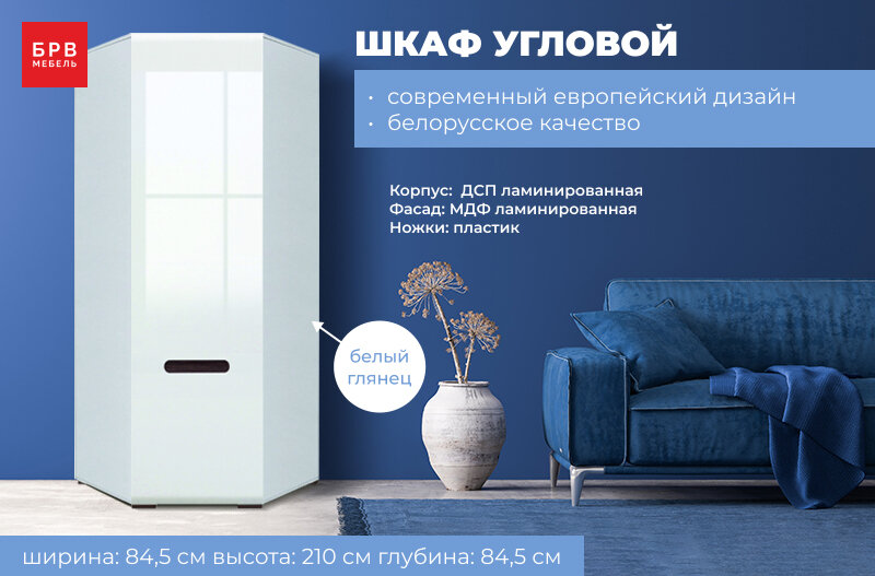 СохранитьШкаф угловой БРВ Мебель AZTECA S205-SZFN1D/21/10 Белый блеск интересное: