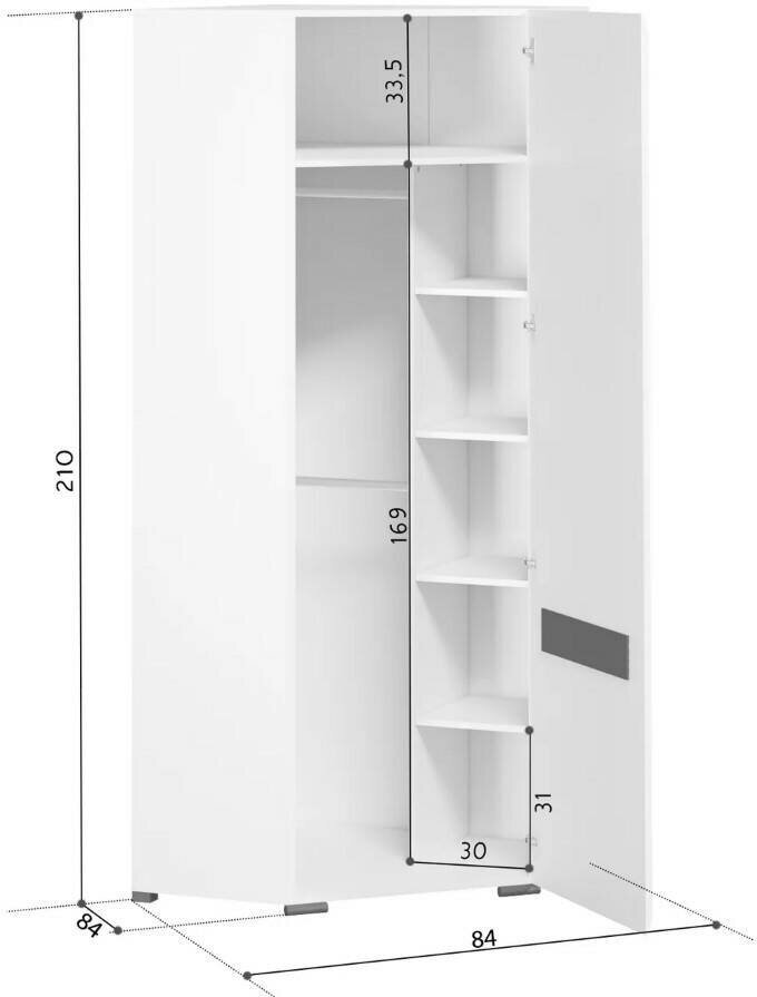 БРВ-Мебель Шкаф платяной угловой однодверный 84,5 на 84,5 см угол Ацтека SZFN1D/21/10 белый глянец