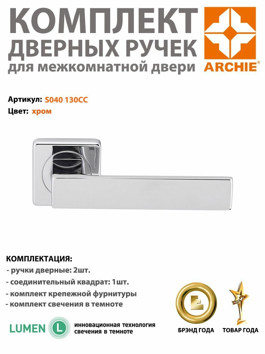 Дверная ручка Archie S040 130CC на квадратной розетке Хром (Арчи)