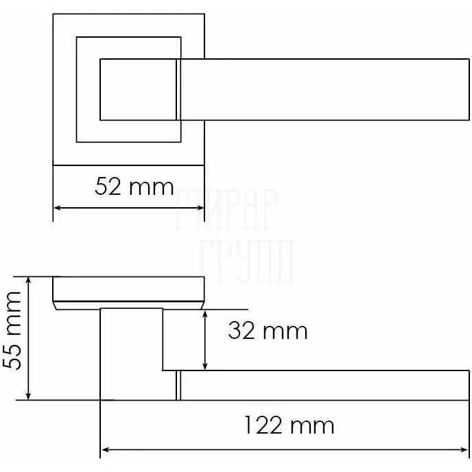 W, ручка дверная межкомнатная MH-27 SC/CP-S, на квадратной накладке, цвет - матовый хром/хром