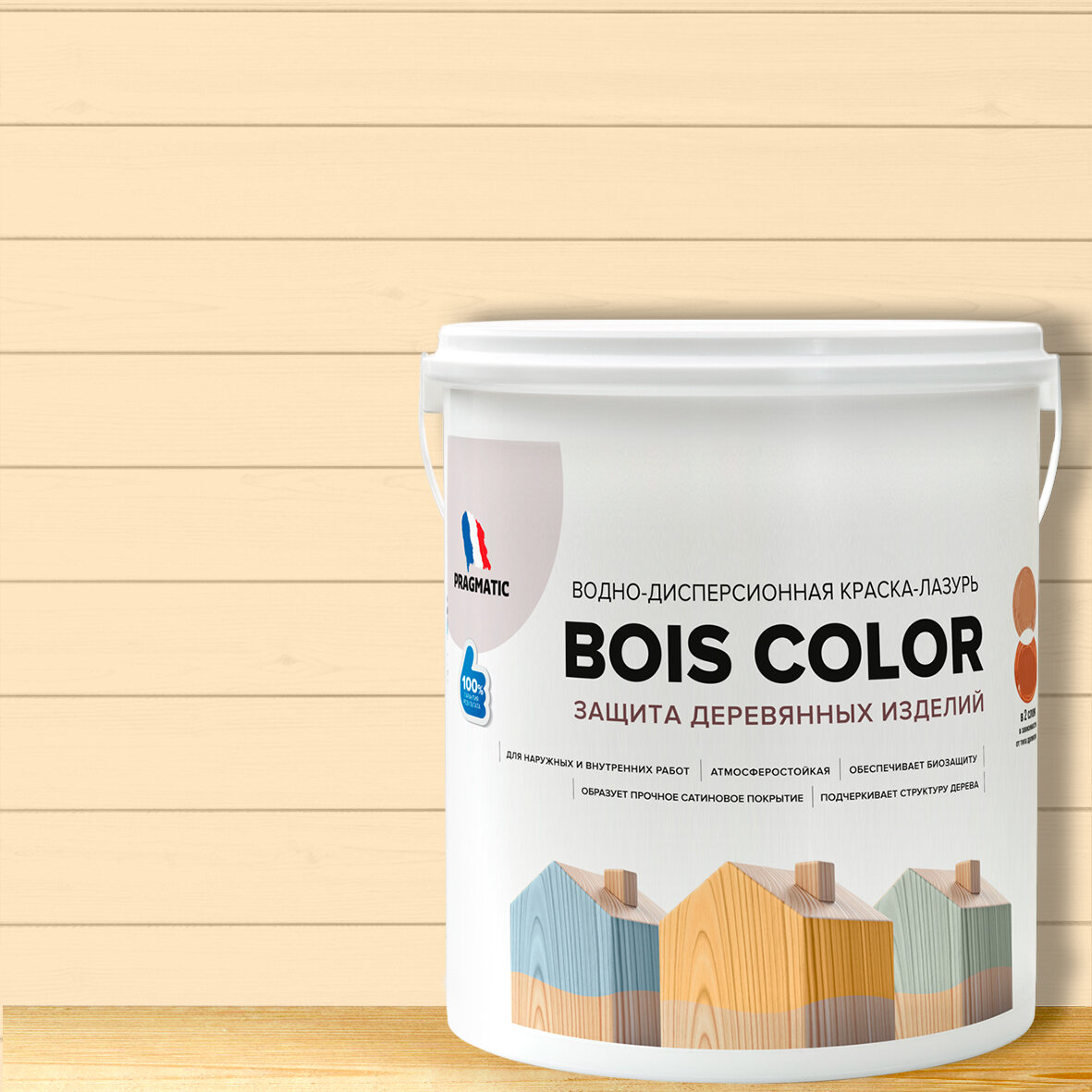 Краска (лазурь) для деревянных поверхностей и фасадов, обеспечивает биозащиту, защищает от плесени, грибков, атмосферостойкая, водоотталкивающая BOIS COLOR 0,9 л цвет Светло бежевый 8604