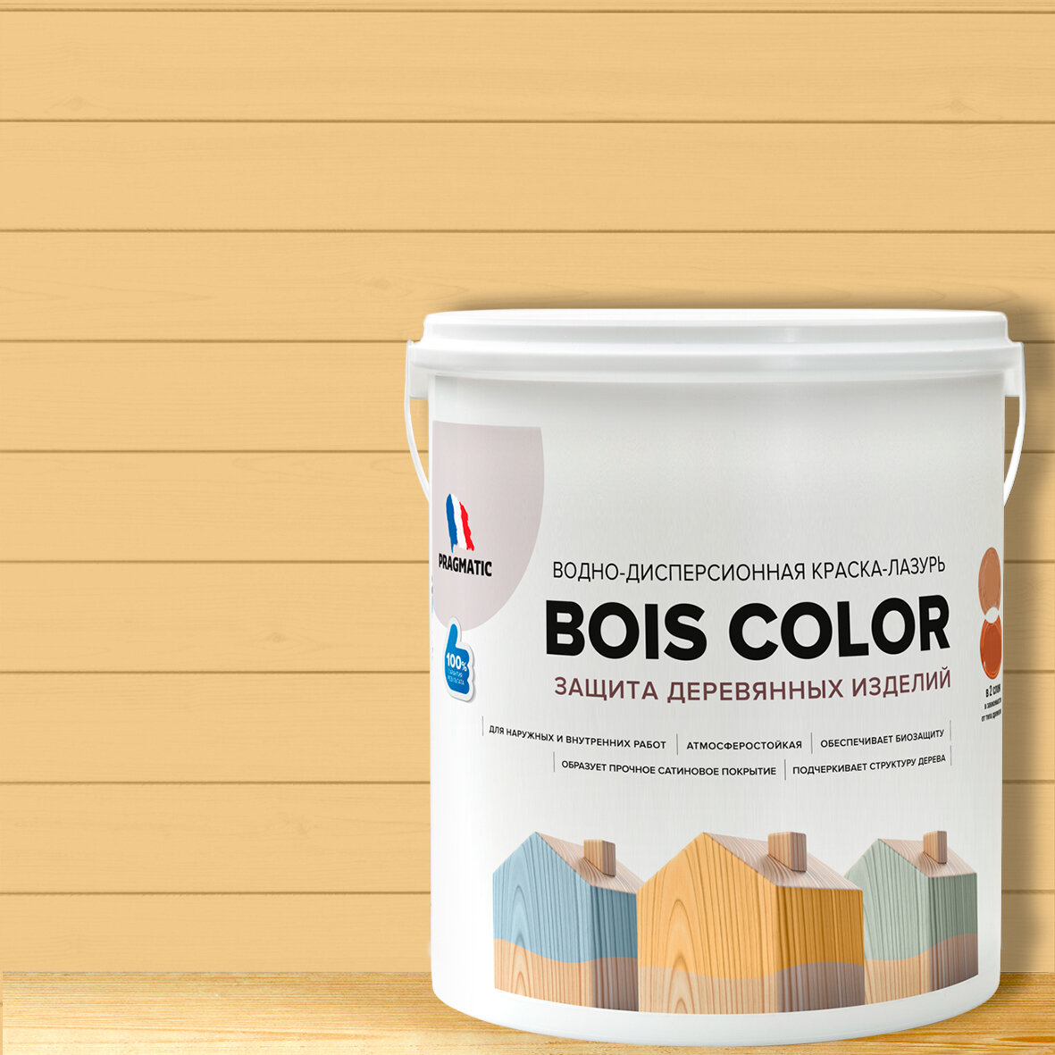 Краска (лазурь) для деревянных поверхностей и фасадов, обеспечивает биозащиту, защищает от плесени, грибков, атмосферостойкая, водоотталкивающая BOIS COLOR 0,9 л цвет Светло желтый 7970