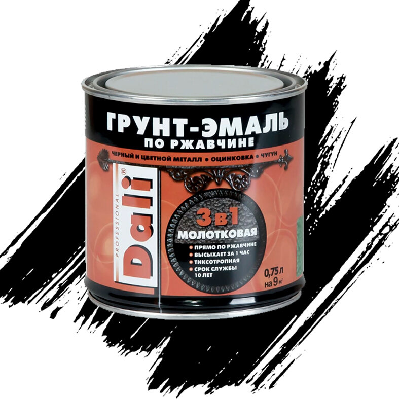 Грунт-эмаль по ржавчине молотковая Dali 0,75 л черный