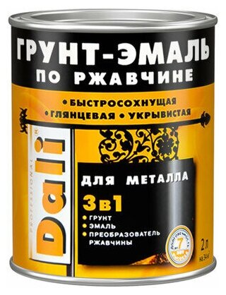 Грунт-эмаль по ржавчине Dali 3 в 1, глянцевая, 2 л, черная