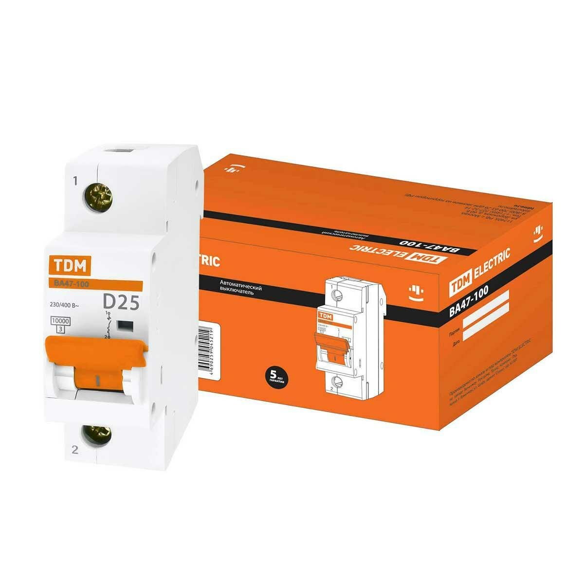 TDM Авт. выкл. ВА47-100 1Р 25А 10кА х-ка D SQ0207-0004 (20 шт.)