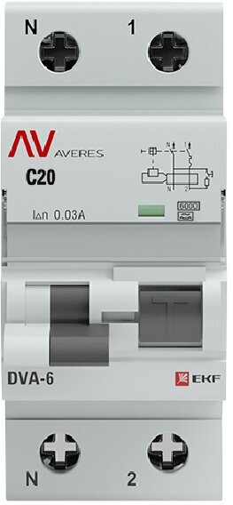 EKF Автомат дифференциальный DVA-6 1P+N 20А (C) 30мА (A) 6кА AVERES (rcbo6-1pn-20C-30-a-av)