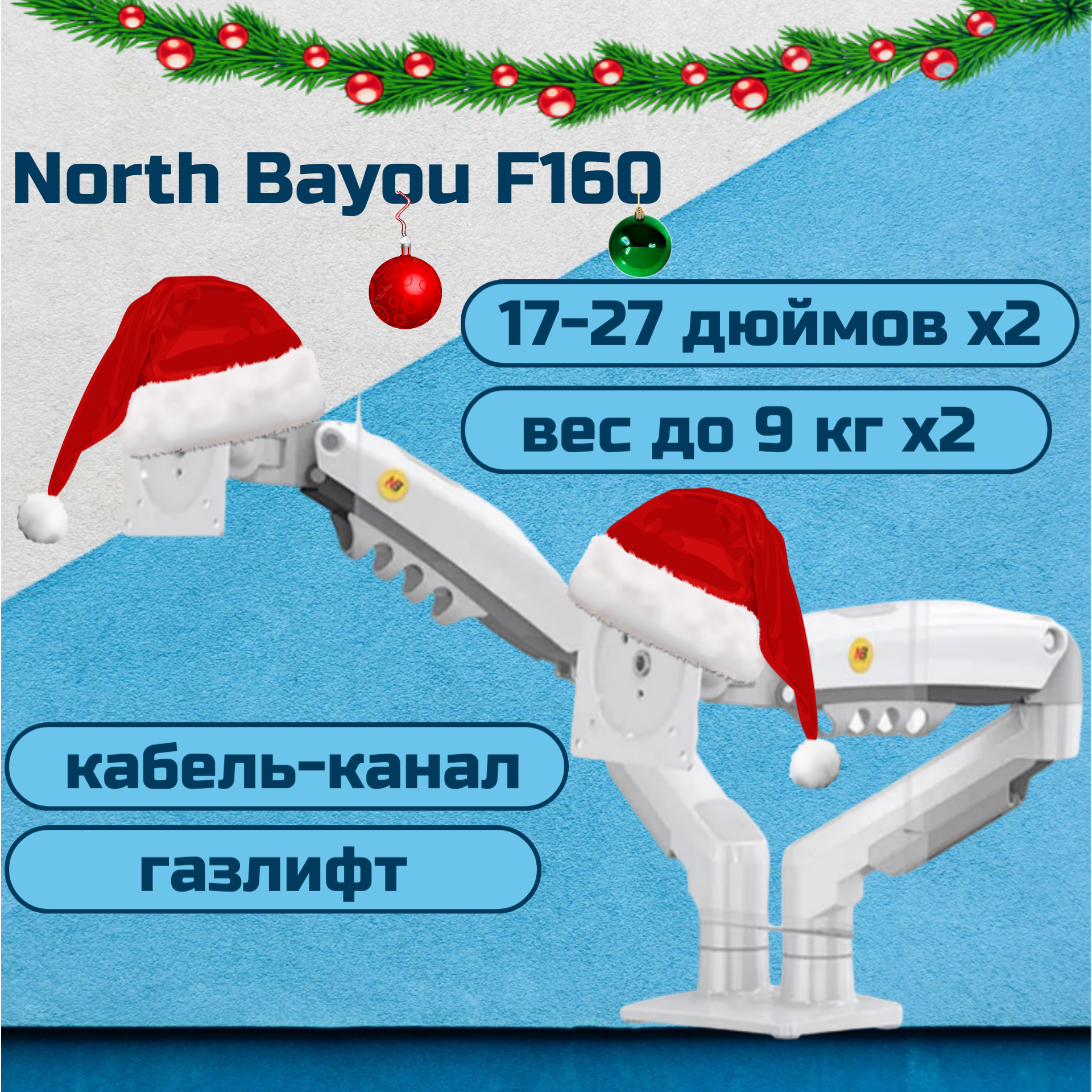 Двойной настольный кронштейн NB North Bayou F160 для мониторов 17-27" до 9 кг, белый интересное: