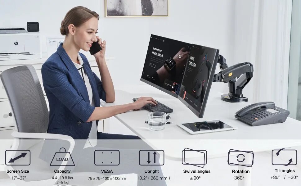 Двойной настольный кронштейн NB North Bayou F160 для мониторов 17-27" до 9 кг, белый