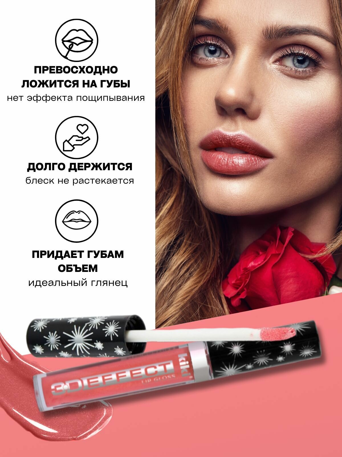 Блеск для губ kiki 3D EFFECT, придающий объем, тон 901 насыщенно-розовый, LIP GLOSS, глянцевый блеск с увеличением объема, не липкая структура, увлажняющая и стойкая жидкая помада