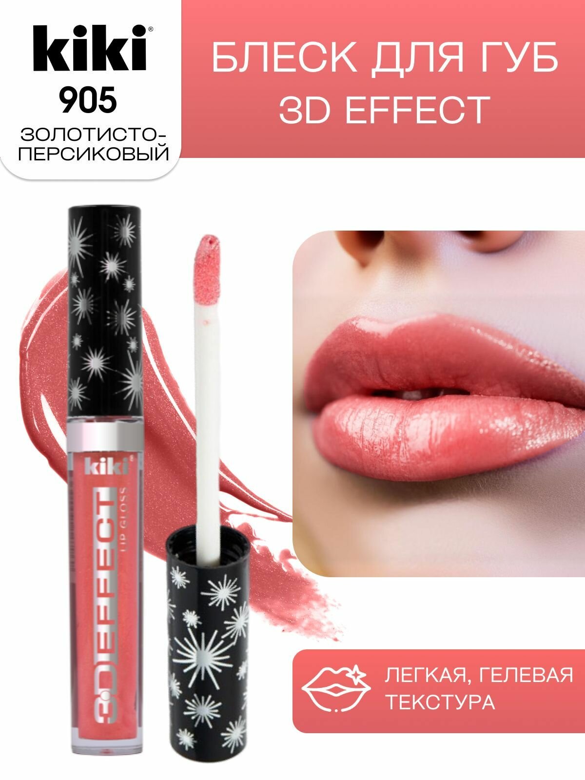 Купить Блеск для губ kiki 3D EFFECT, придающий объем, тон 905 золотисто-персиковый, LIP GLOSS, глянцевый блеск с перламутром иувеличением объема, не липкая структура, увлажняющая и стойкая жидкая помада