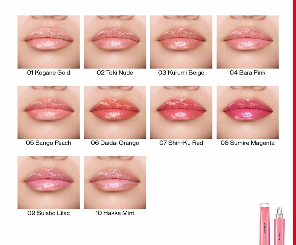 Shiseido Блеск для губ Shimmer Gel Gloss, 07 SHIN-KU RED, 9 мл.