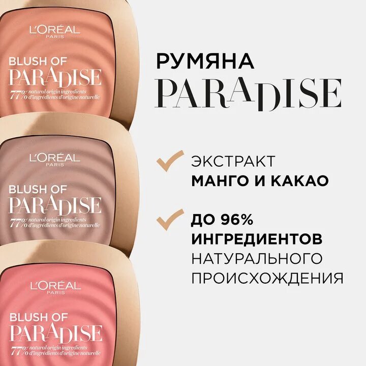 Румяна L'Oreal Paris "Paradise", тон 01, Персик интересное: