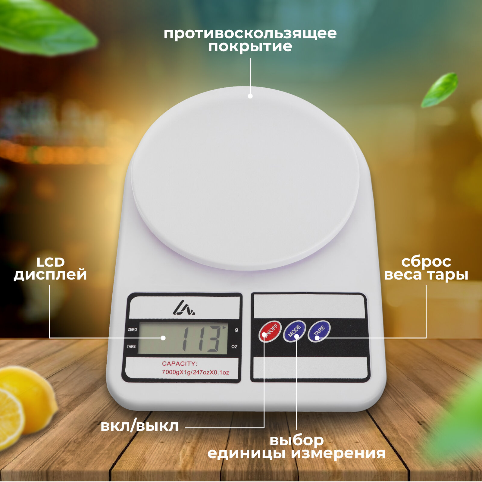 Весы кухонные Luazon LVK-704 электронные до 7 кг белые интересное: