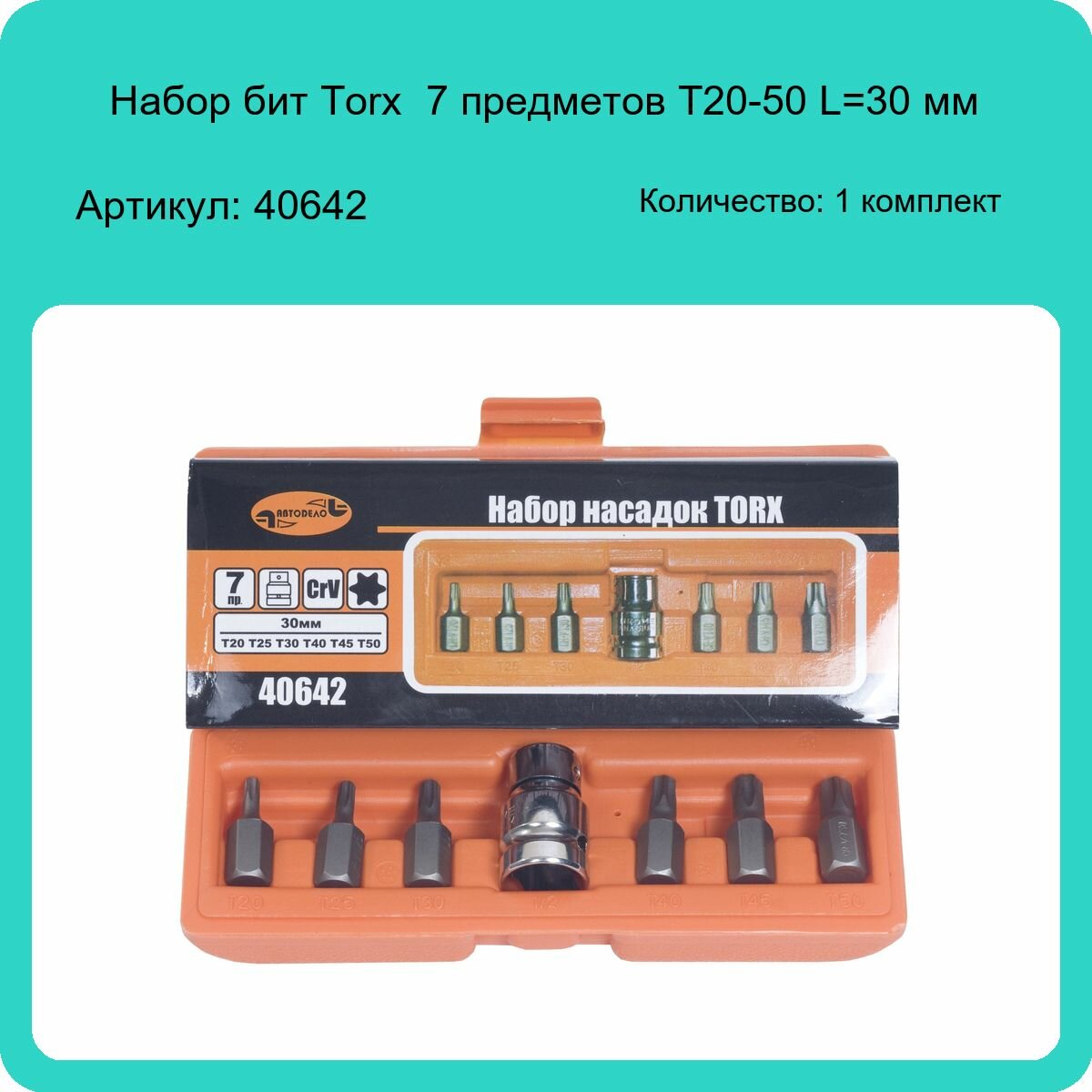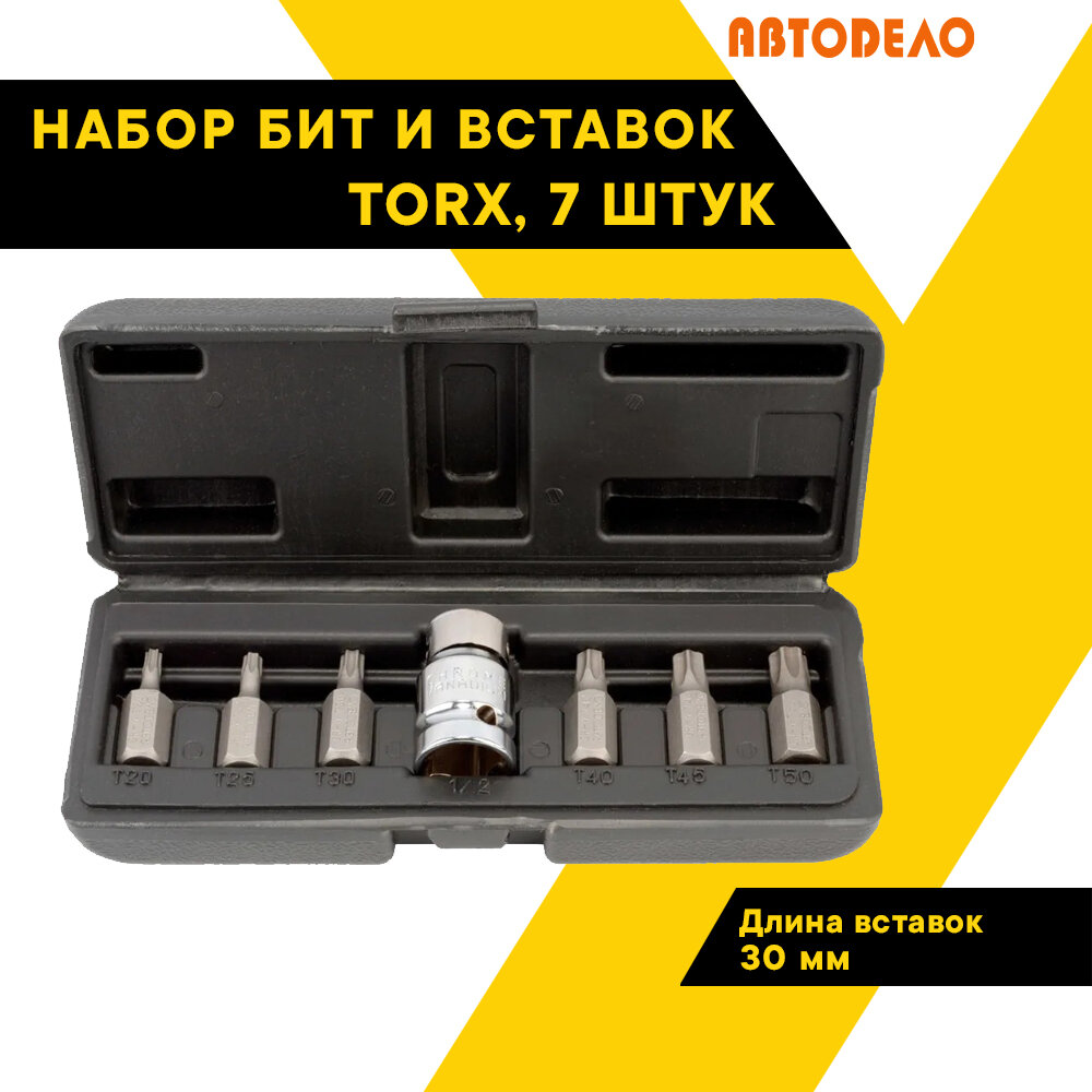 Набор бит, набор вставок АвтоDело, и вставок Torx , 7 предметов, Т20-Т50, 30мм, 40642