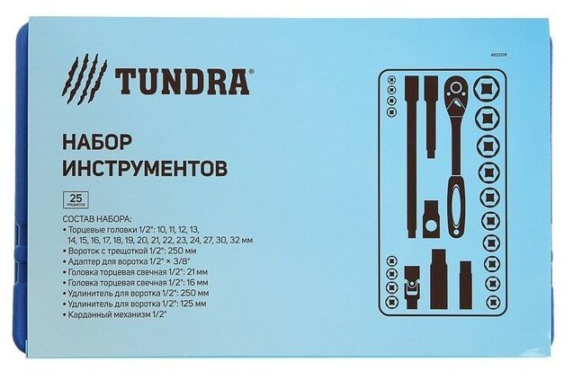 Набор инструментов в кейсе Тундра , автомобильный, 1/2", 25 предметов 4822378
