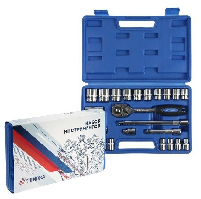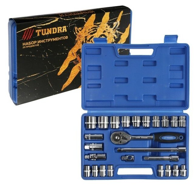 Купить Тундра Набор инструментов в кейсе , подарочная упаковка, CrV, 1/2", 25 предметов 4822378
