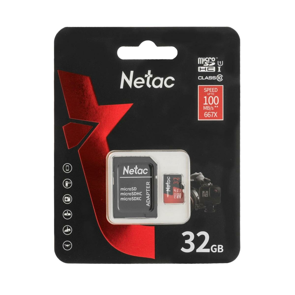 MicroSDHC 64Gb Netac P500 Extreme Pro A1 V10 Class 10 Uhs-i (u1), Nt02p500pro-064g-r, R100Mb/s, SD а .