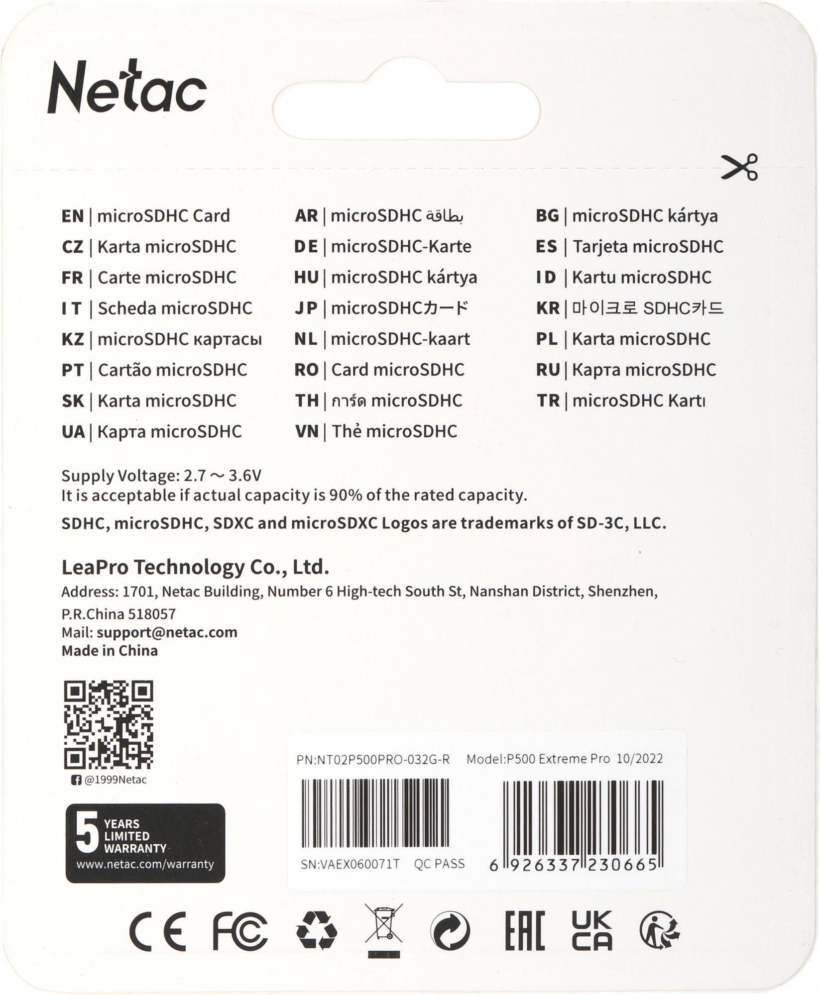 Комплект 5 штук, Карта памяти Netac MicroSD card P500 Extreme Pro 32GB, retail version w/SD