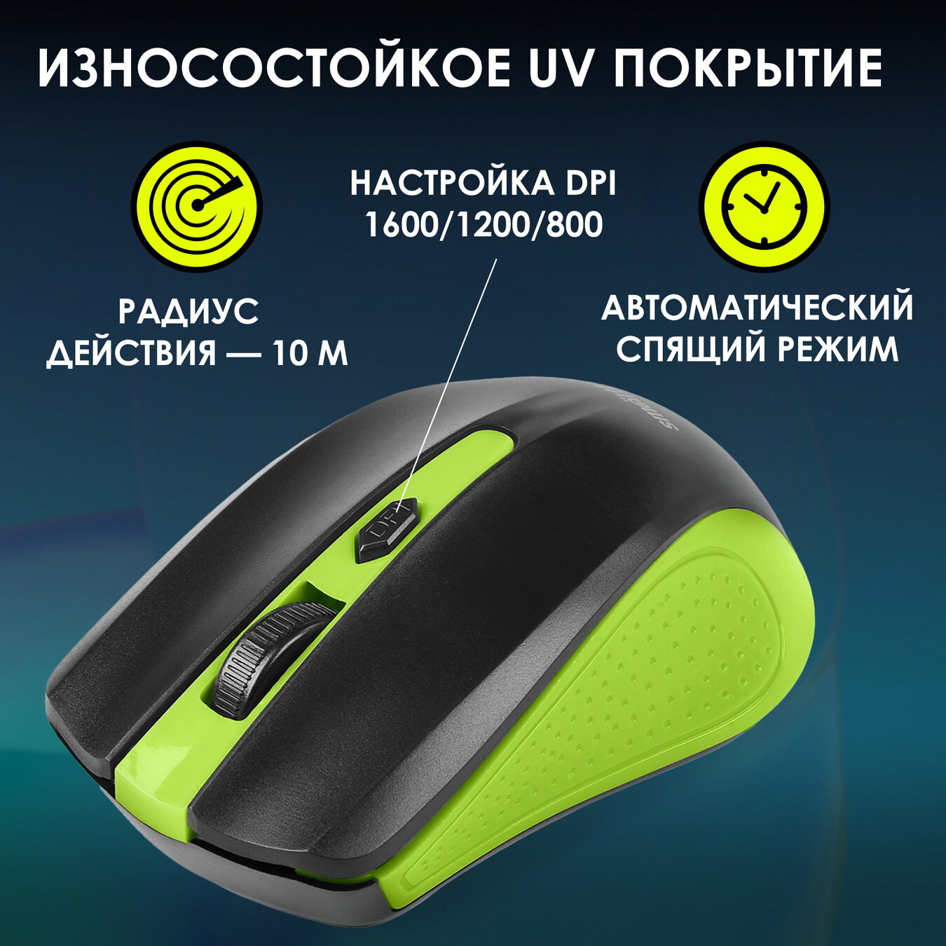 Мышь компьютерная Smartbuy ONE 352 зелено-черная WLS (SBM-352AG-GK)/60, 1801631