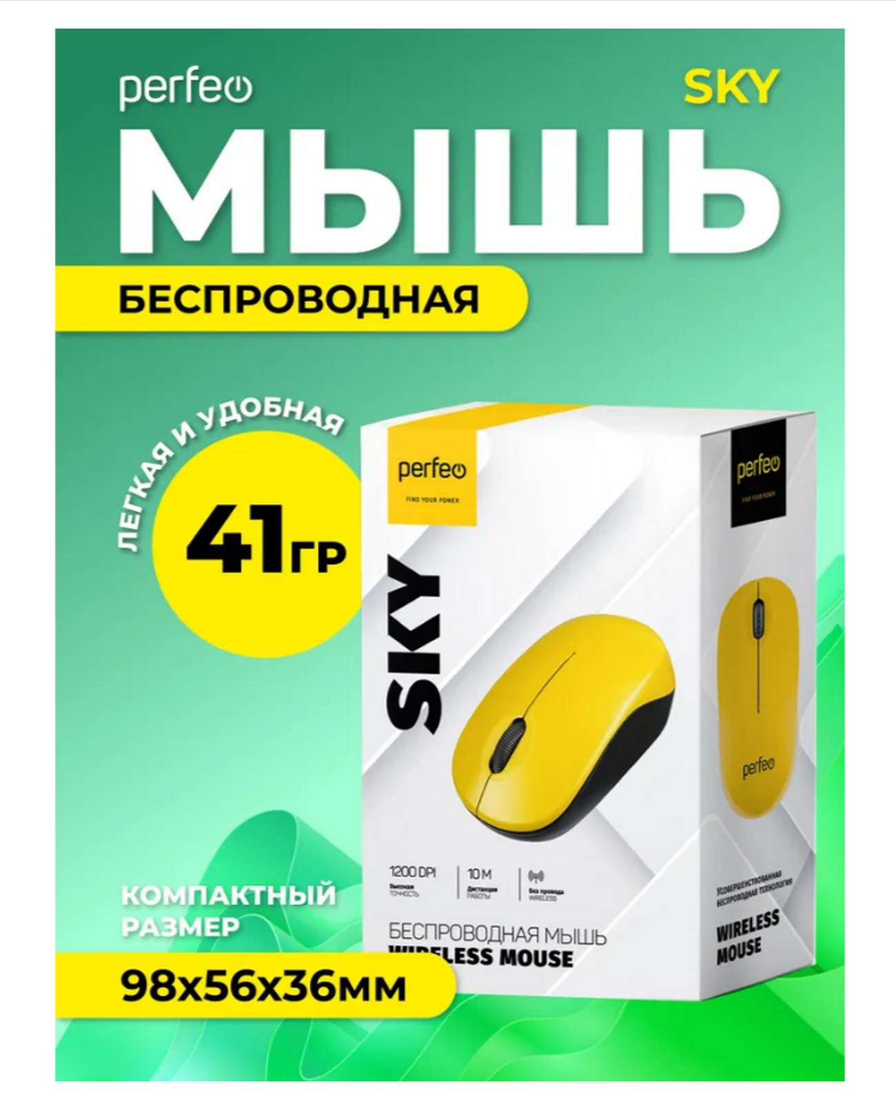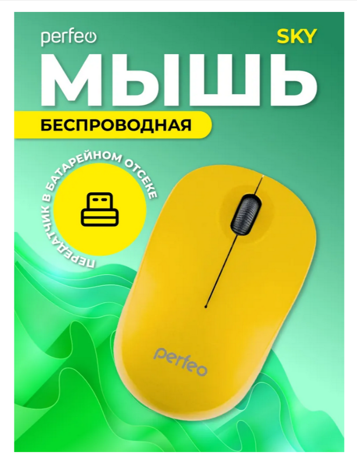Мышь Perfeo мышь беспров., оптич. "SKY", 3 кн, DPI 1200, USB, жёлт.