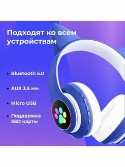 СохранитьБеспроводные наушники Hoco W27 Cat ear Global, mini jack 3.5 mm, синий интересное: