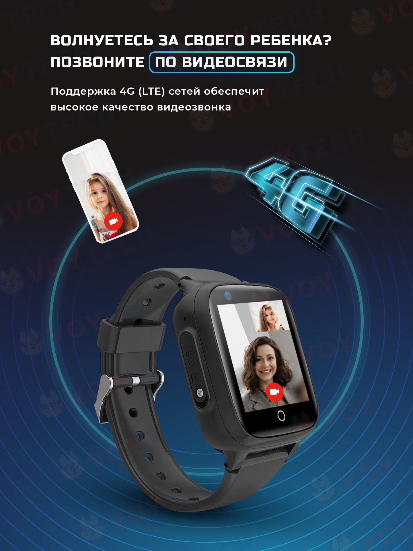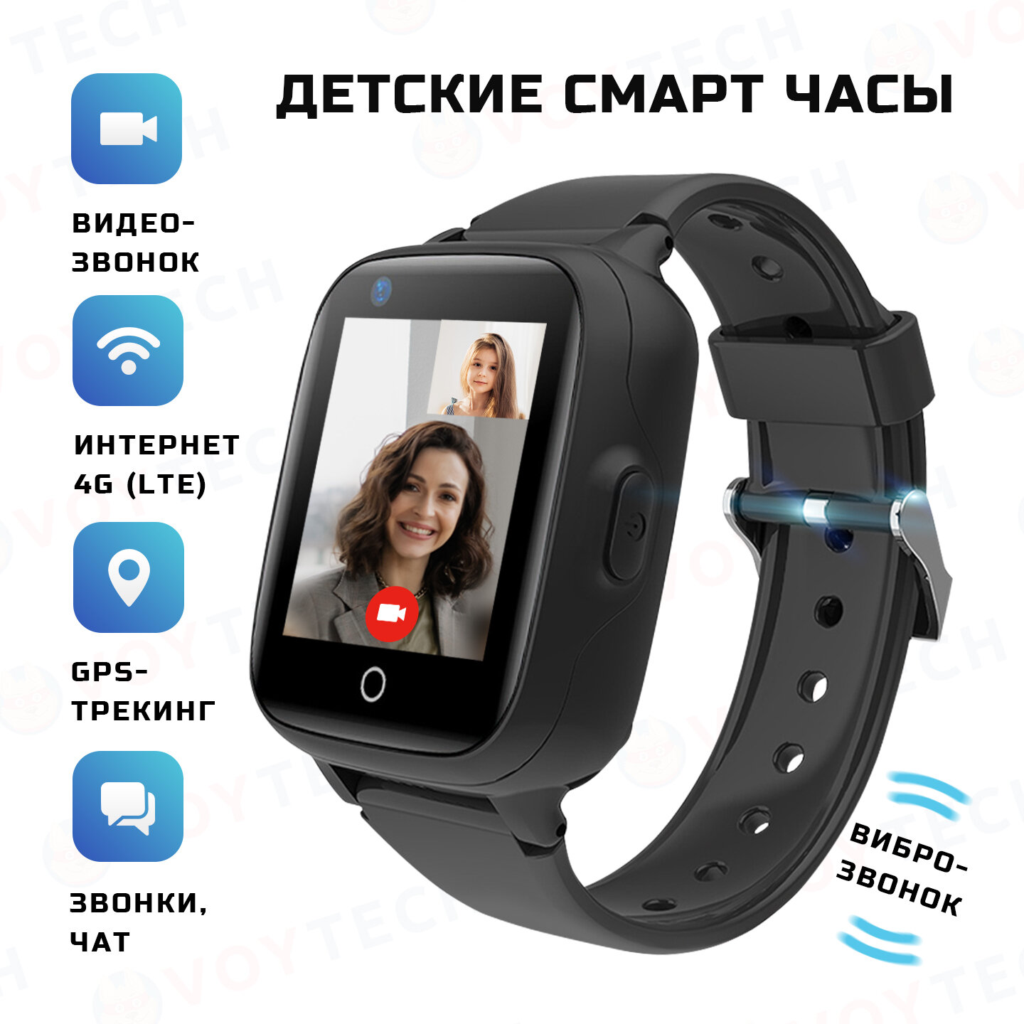 Купить Смарт часы детские KT15 4G LTE школьнику, умные часы с GPS и сим картой, смарт-часы с видеозвонком и телефоном для мальчика в школу, черный