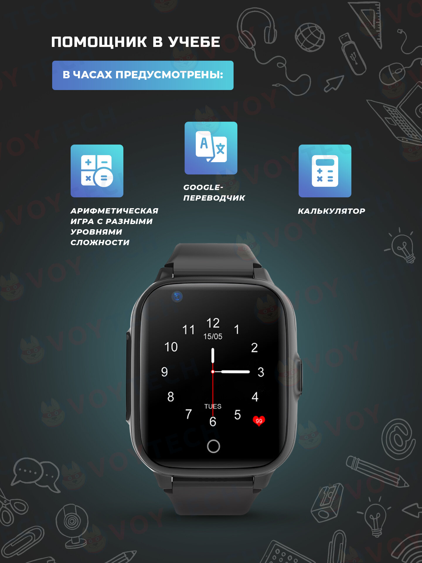 СохранитьСмарт часы детские KT15 4G LTE школьнику, умные часы с GPS и сим картой, смарт-часы с видеозвонком и телефоном для мальчика в школу, черный интересное: