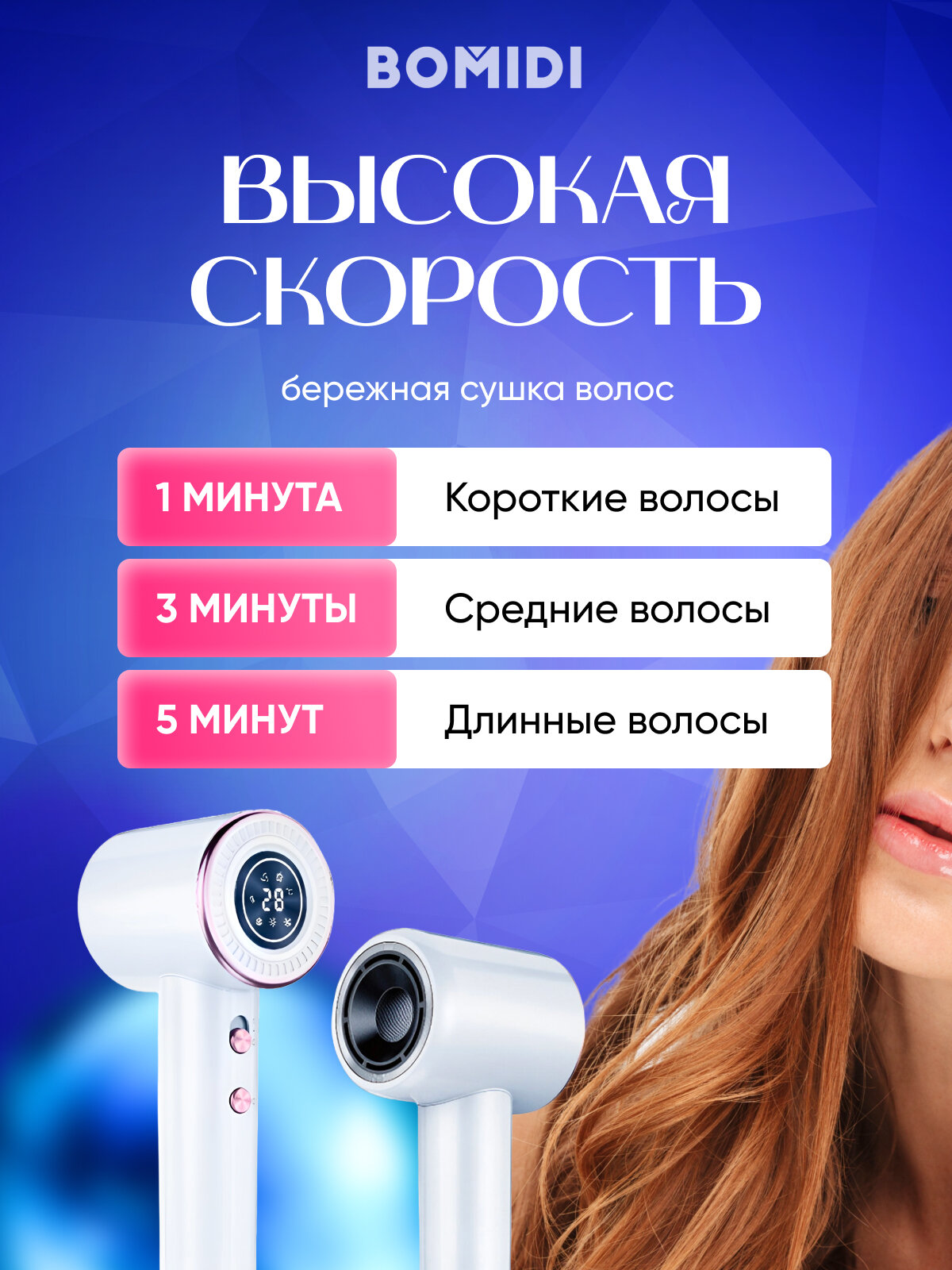 Купить Высокоскоростной фен для волос BOMIDI HD02