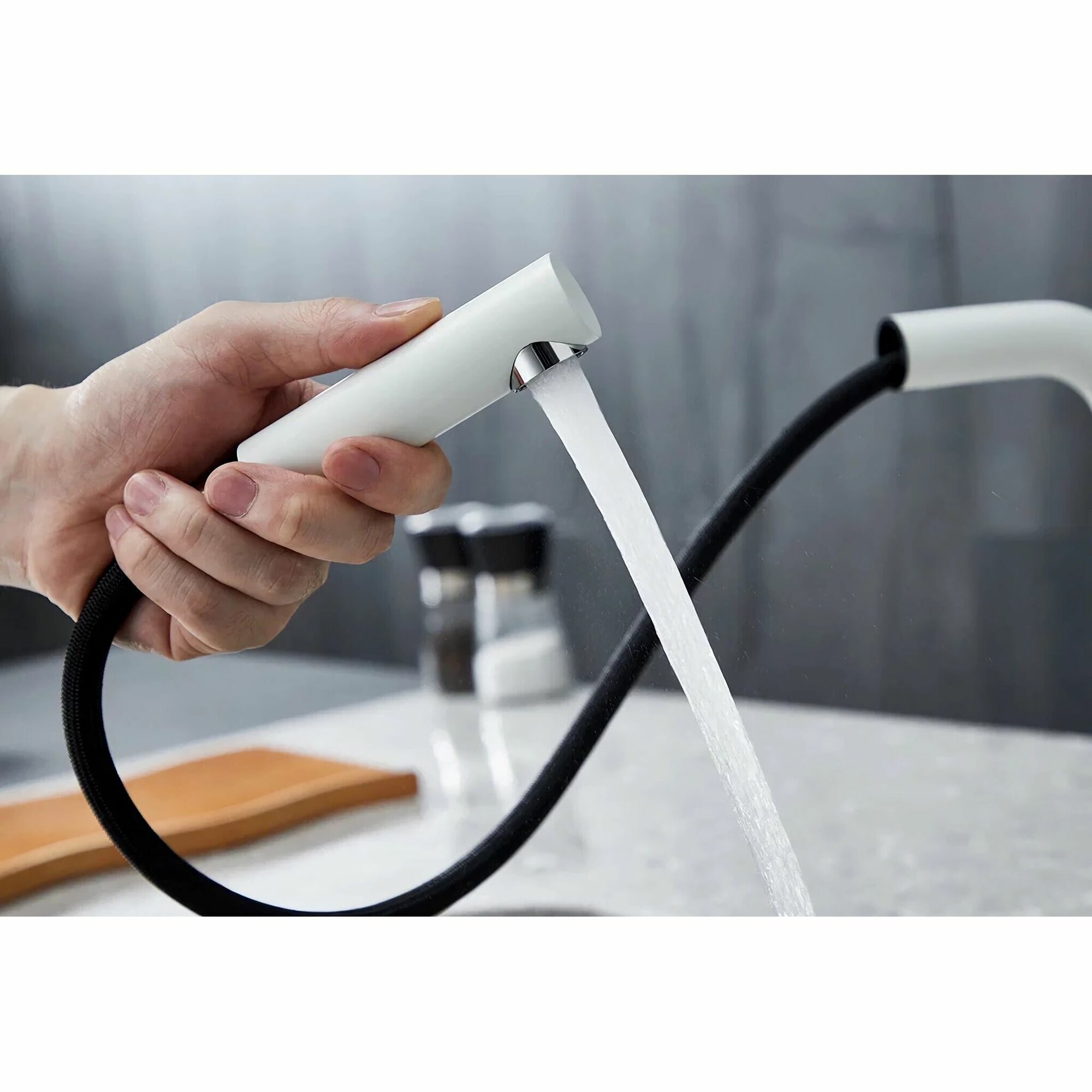 Смеситель для кухни Paulmark Kassel Ka214311-431TW с выдвижным изливом, белый матовый