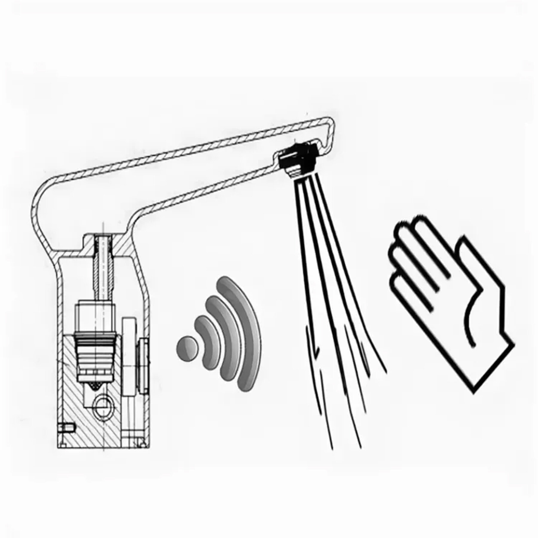 Смеситель сенсорный на раковину, с регулировкой температуры воды, на основании, латунный, хром