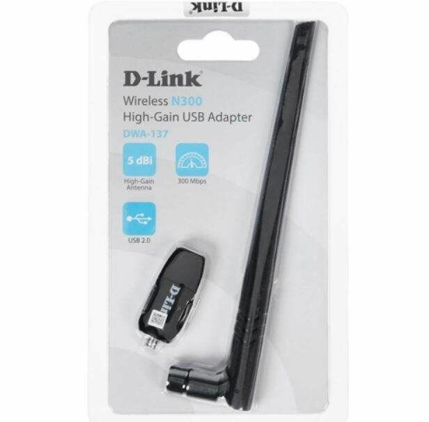 D-Link (DWA-137 /c1a) Wireless N300 USB Adapter 802.11g/n 300Mbps 5dBi