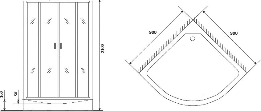| Форма поддона | четверть круга |
